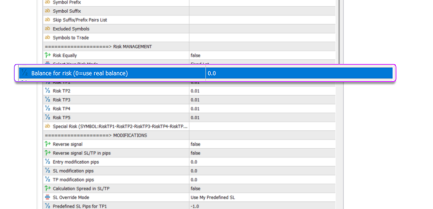 Define unique lot sizes or risk percentages for specific trading pairs, separate from your general settings, for precise control over your trades.