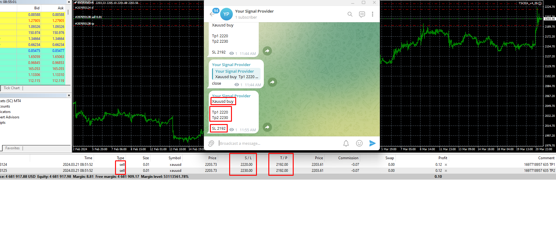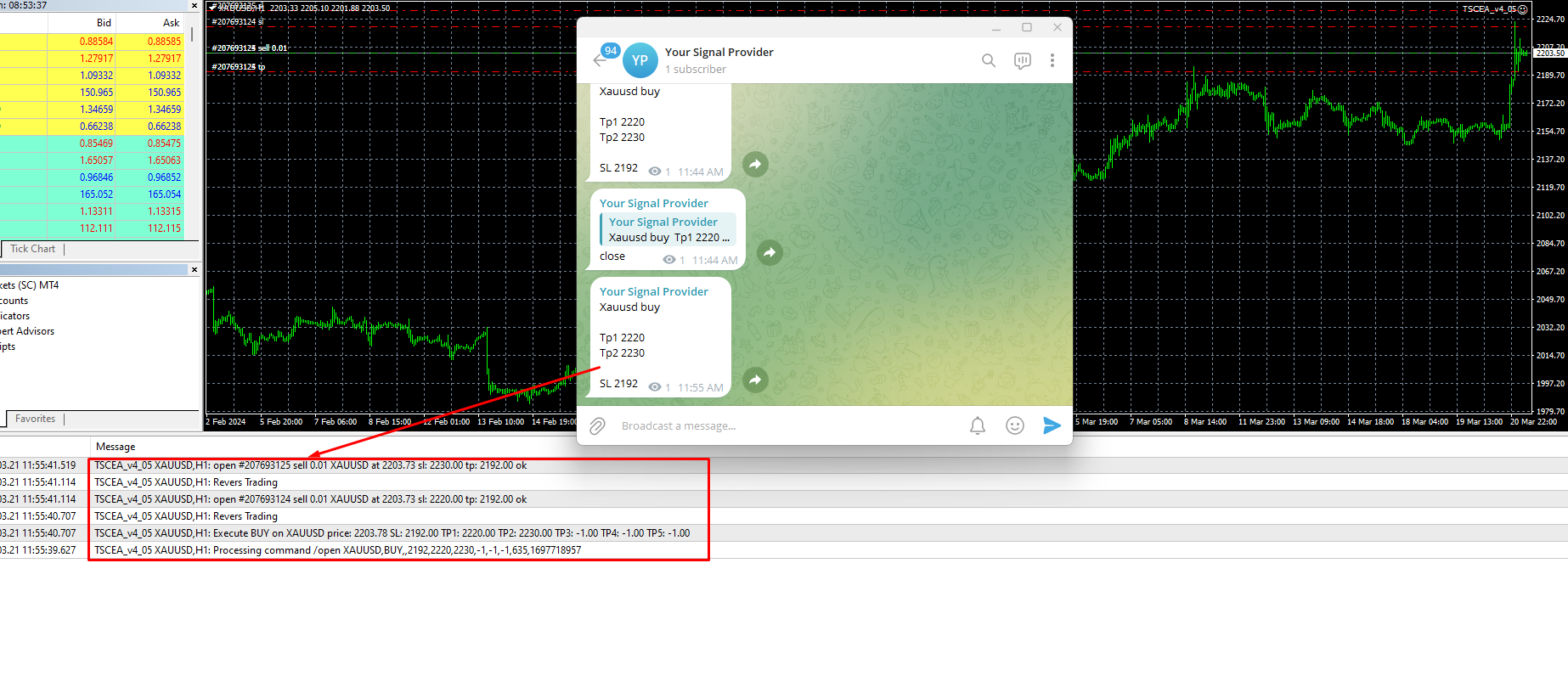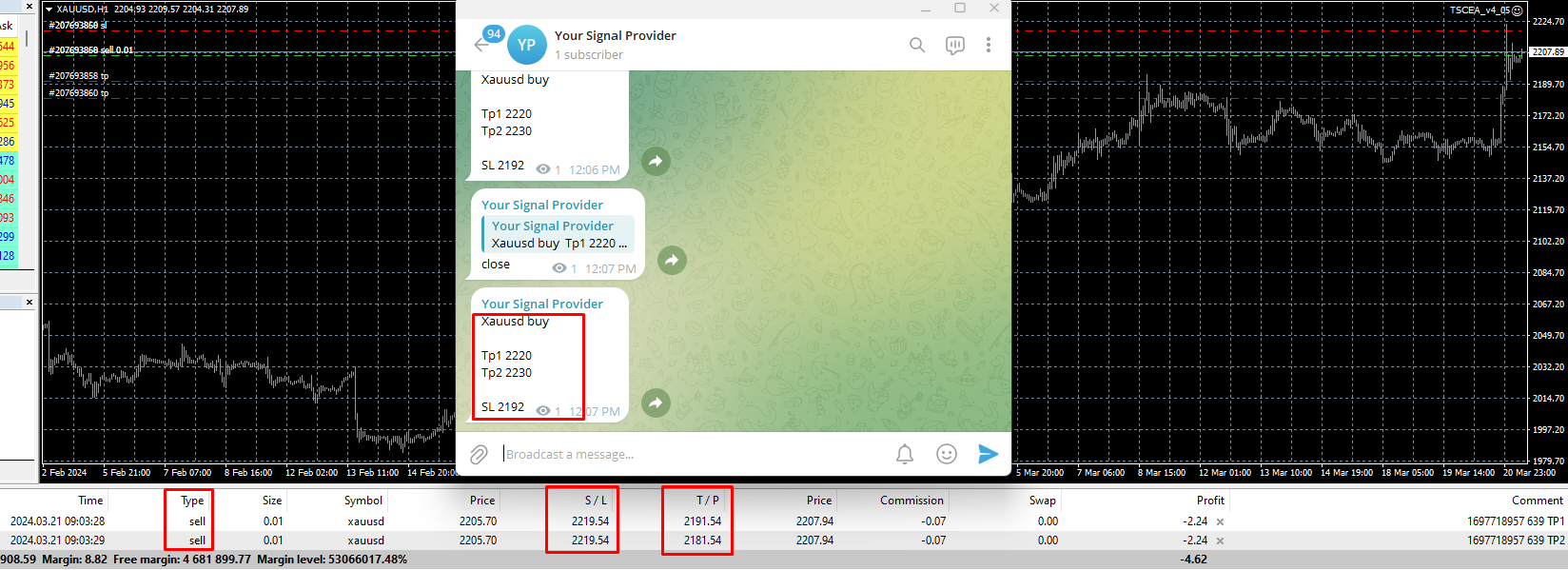 After that, we sent a test where we could see that the signal has been reversed from BUY to Sell and it has taken different SL and TP price by following the same pip amount in the signal. (See the image below)