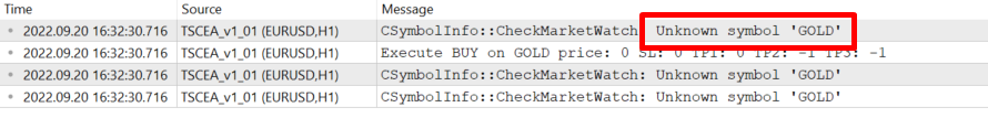Suppose your signal provider has sent a signal called GOLD but your broker refers to this signal as XAUUSD. So, you can see that there is a difference between two names. In this case, the telegram signal copier will not be able to execute the GOLD signal because it will not be able to find any signal called GOLD in your broker’s signal list and it will refer to the signal as an ‘Unknown symbol’ in the expert section.