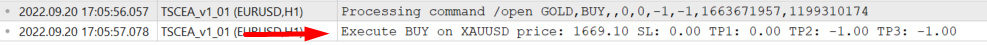 Now, see! when gold buy signal is sent again, the trade copier has executed the signal.