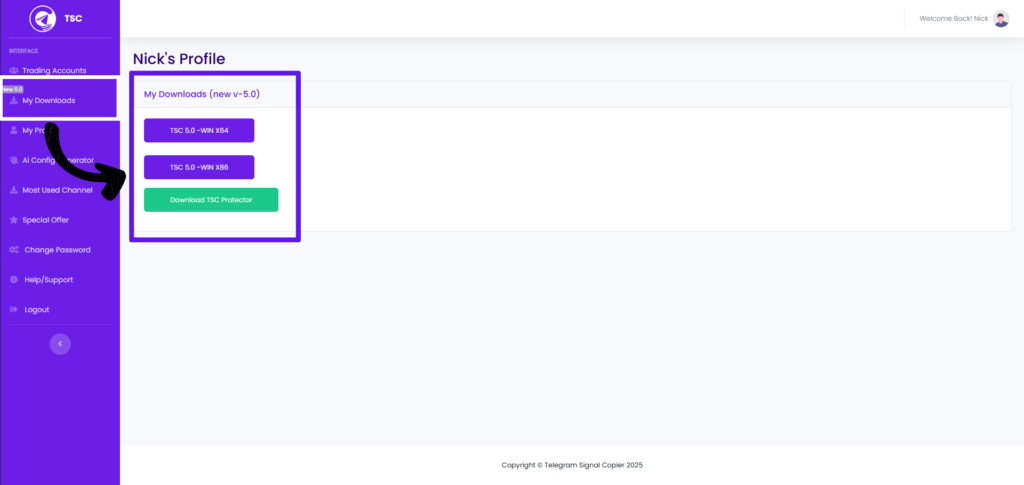 - The user should download the telegram trade copier setup file from the βDownloadsβ tab (2 versions available: 64 bit and 32 bit).