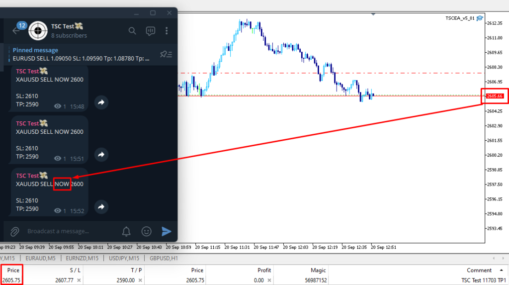 Many traders prefer to set TP1, TP2, TP3, TP4, and TP5 separately rather than set all TPs at the same price. To follow the command, exact keywords (from the reply message) need to be entered in the Set TP field.